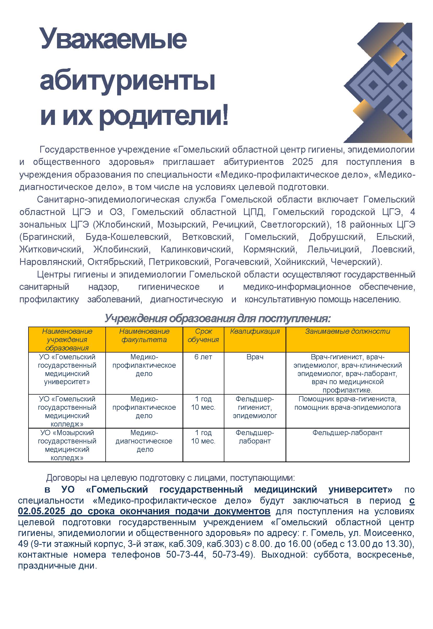 Уважаемые абитуриенты и их родители!