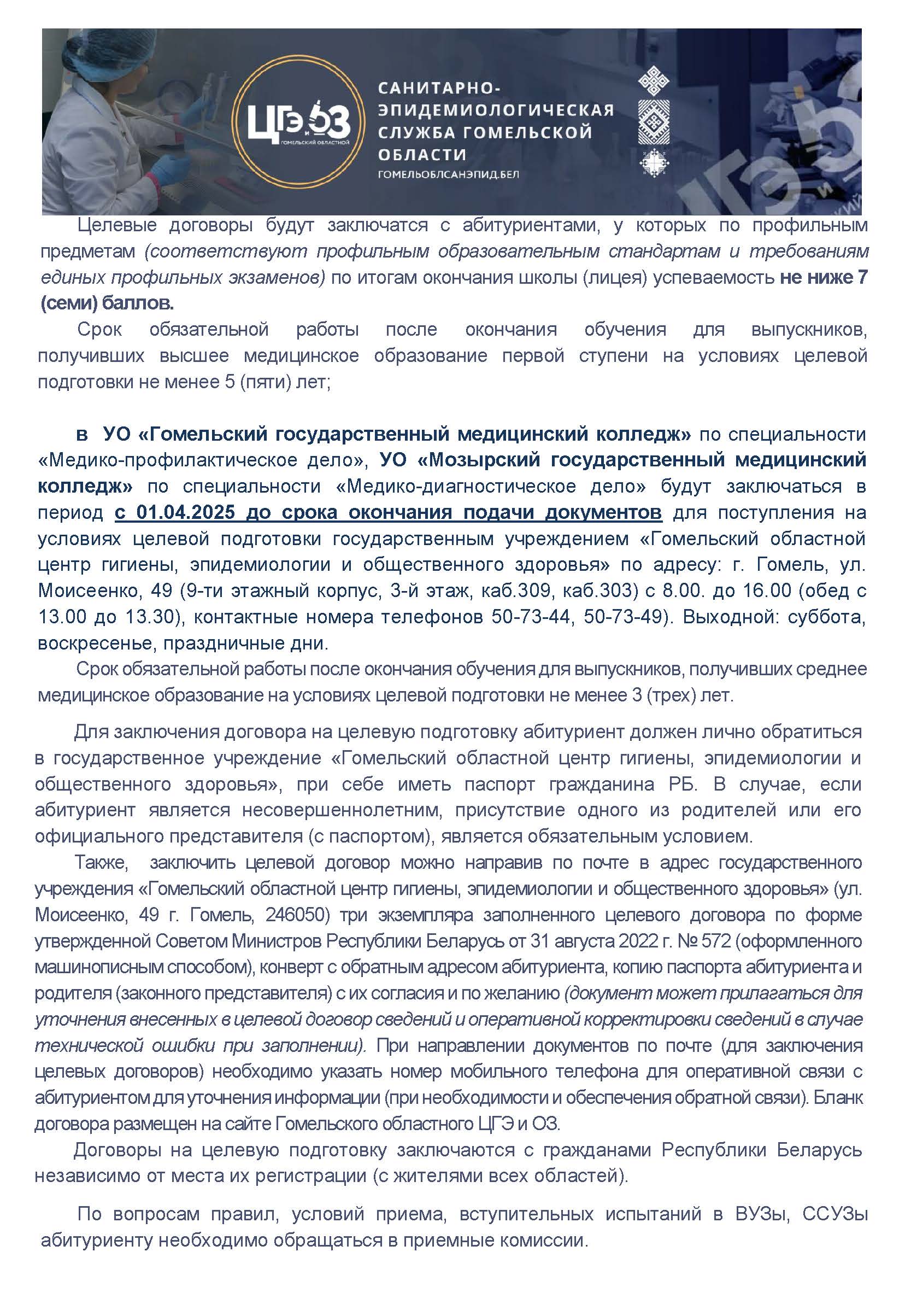 Информация для абитуриента